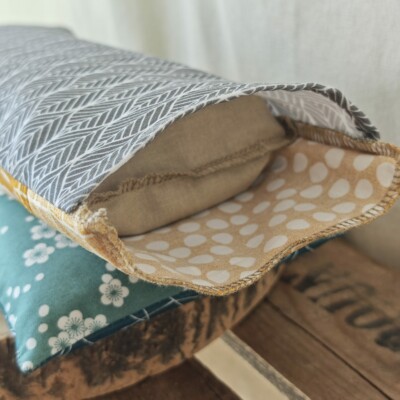Entretien Facile : La housse est cousue de façon à être déhoussable, révélant à l’intérieur, une pochette contenant les graines de lin. Cela permet un lavage simple et pratique tout en préservant les graines de l’eau.