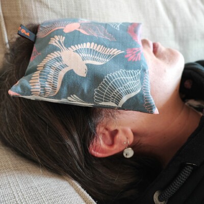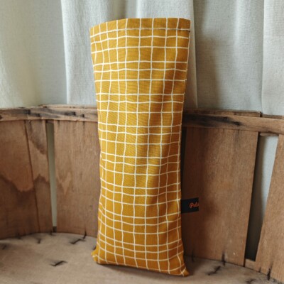 – Bandeau en graines de lin + lavande locale (cultivée à 5 km de l’atelier) : un parfum relaxant pour une expérience sensorielle, parfait pour apaiser les migraines.