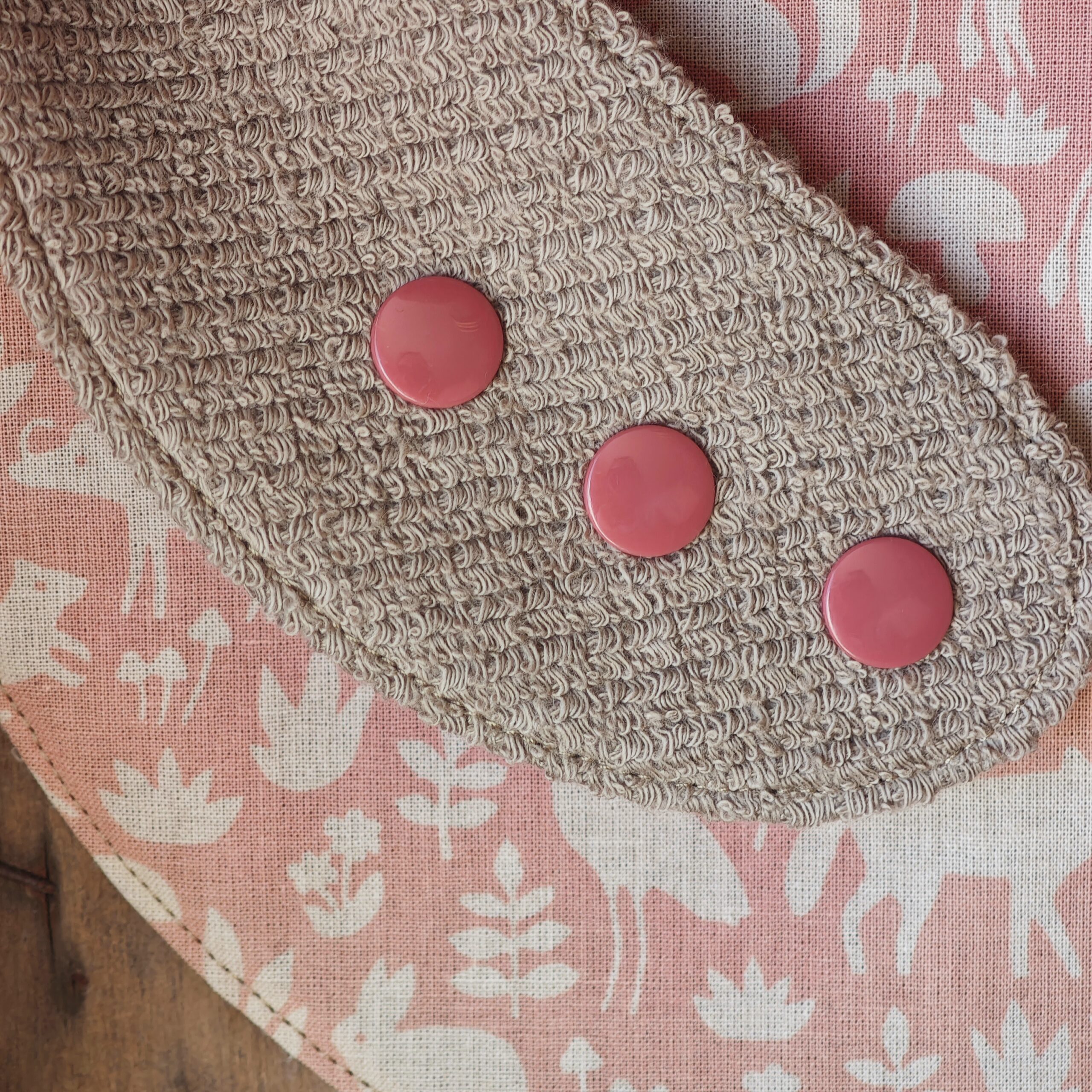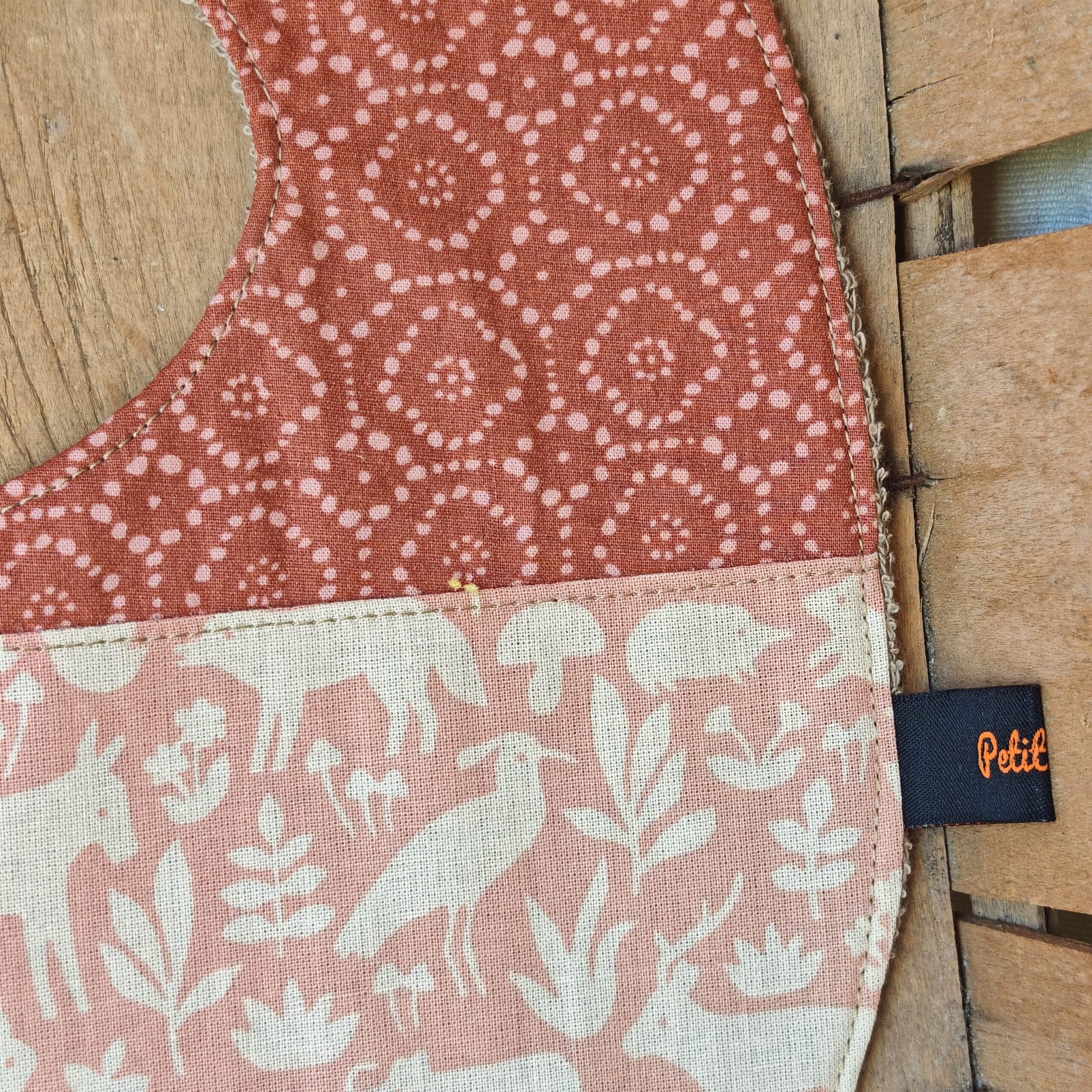 Chaque bavoir est unique.  Ils sont fait mains, dans la cabane atelier qui fonctionne à l’électricité solaire.
