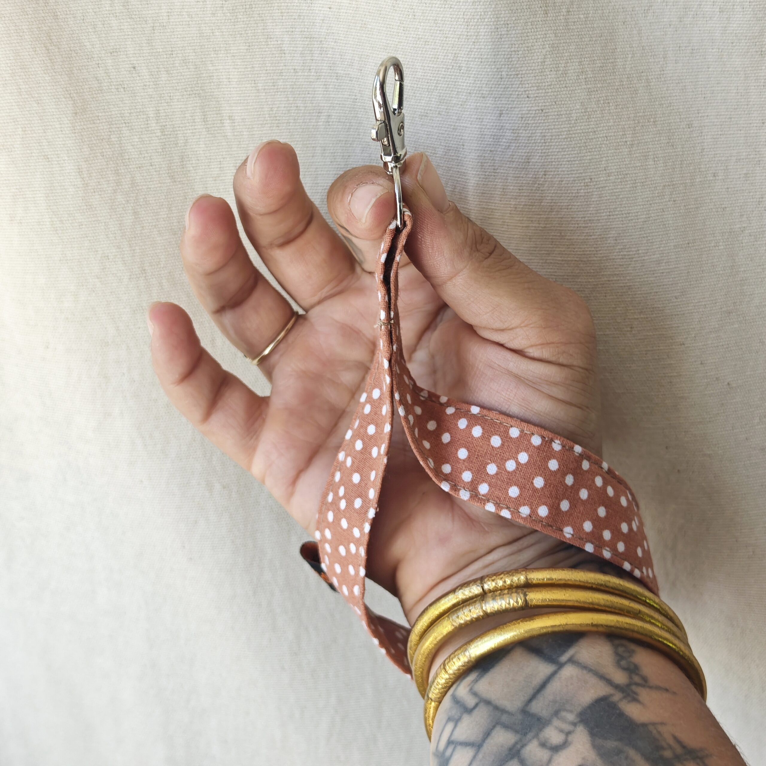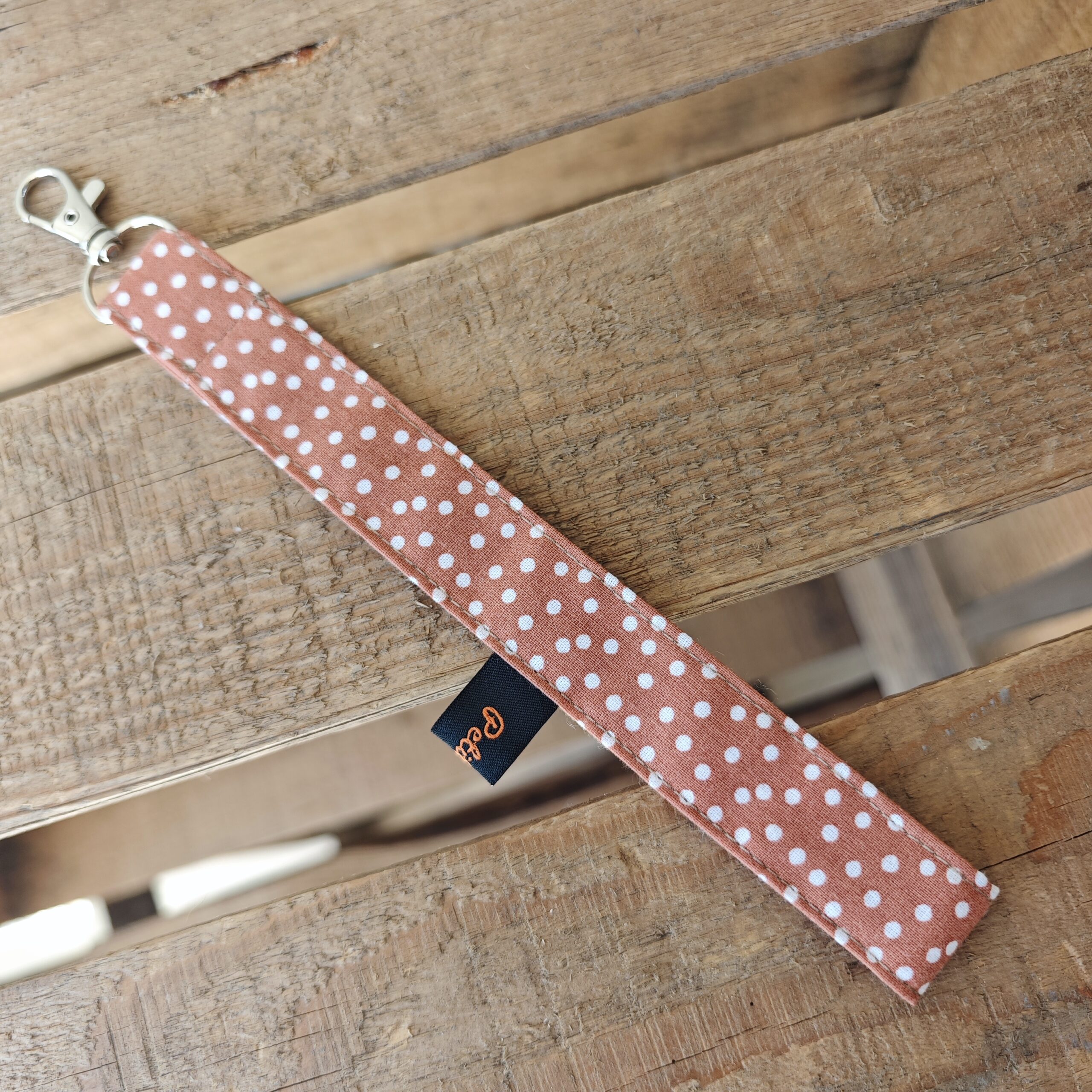 Ce porte clé est confectionné avec amour. Avec sa sangle en tissu coloré, il se glisse facilement autour de votre poignet, vous permettant de garder vos clés à portée de main tout simplement.  C’est super pratique !